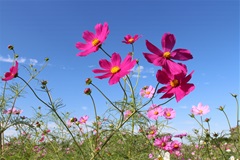 真っ青な空にピンクのコスモス。絵になりますね!「私はお花の中で1番コスモスが好き」そんな声が・・・