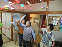 落ち葉落とし・・色紙をうちわで扇いで制限時間内に何枚落とせるかを競います。
