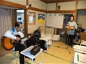 | 歌詞の本をお配りしますので、ギター演奏に合わせてお歌い下さい。(童謡・なつメロ・流行演歌)。歌うことは唾液量が増え抵抗力が向上し、呼吸機能も向上します。後、リラクゼーション効果も御座います。 |